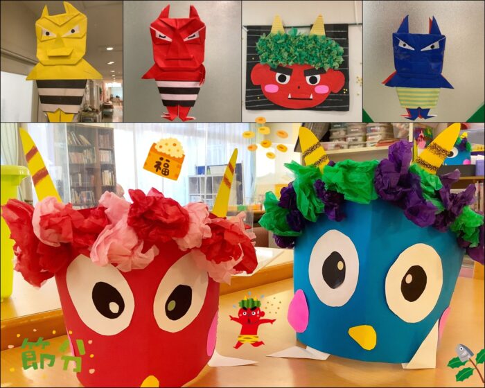 デイケアの利用者さんが心を込めて作成してくださった鬼たちが、施設内のあちこちに登場しました。