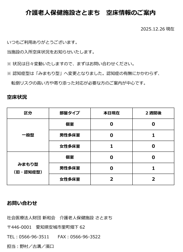 【1月】空床情報