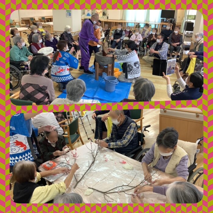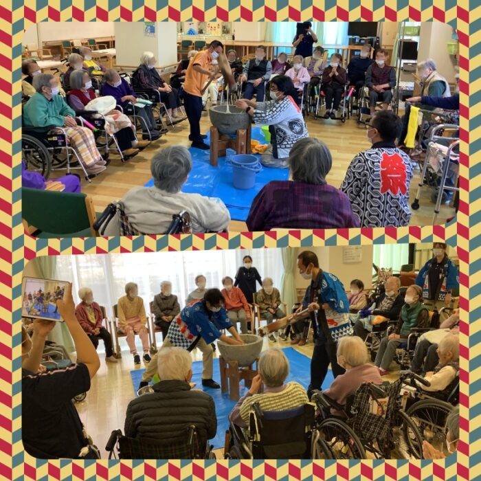 入所フロアにて餅つき大会を開催しました。